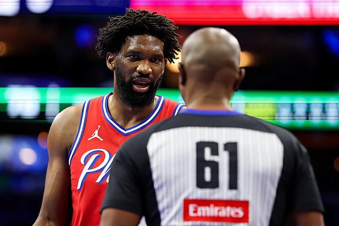 恩比德被罚5万美元!打成2+1后做不雅手势 大帝回应裁判也该罚