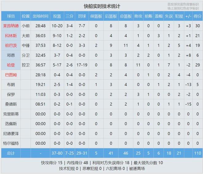 快船跌至西部倒数第二,习惯性下半场崩盘。小卡30分8板3助、哈登29分8板11助、科林斯21分4板3帽。最后看看数据,说说你的心情:
